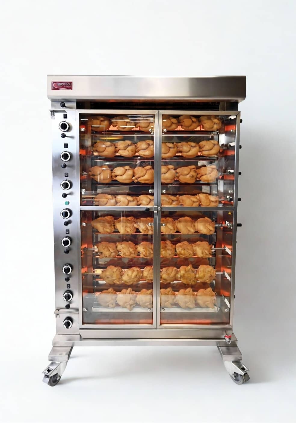 Rôtissoire verticale professionnelle tout inox conçue pour l’intérieur comme l’extérieur. Flexibilité de cuisson, robustesse et entretien simplifié.